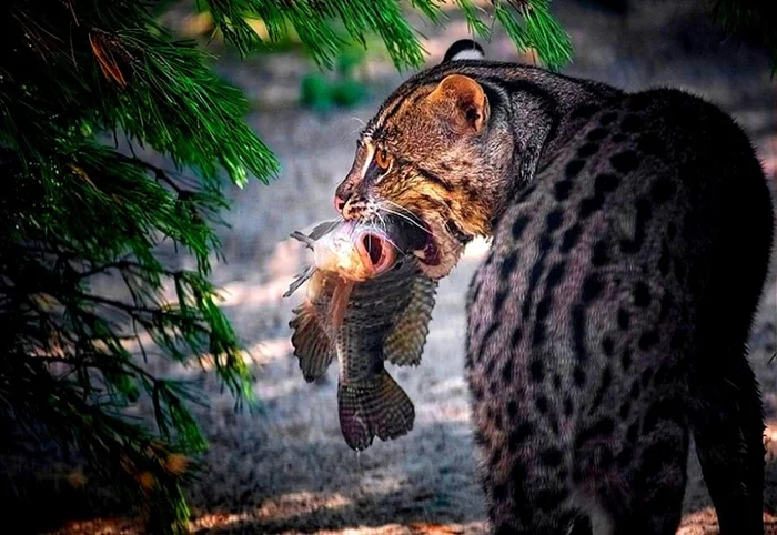 Как итог, кот-рыболов полностью оправдывает своё название. Зверь умело ловит рыб и амфибий, находит и вскрывает раковины моллюсков. Обитатели рек и озер составляют 3/4 от всего рациона хищника. Оставшаяся часть приходится на околоводных млекопитающих и птиц.