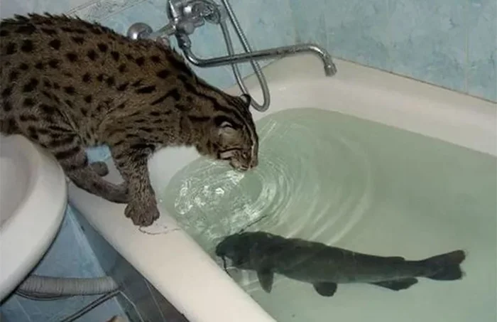 Даже внешность кота-рыболова немного напоминает амфибию.