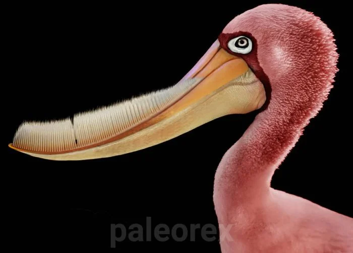 Нижняя челюсть этого вымершего гибрида розового фламинго и зубной щётки содержала тысячи щетинообразных зубов, которые использовались им для поимки и фильтрации планктона и мелких рыбёшек.