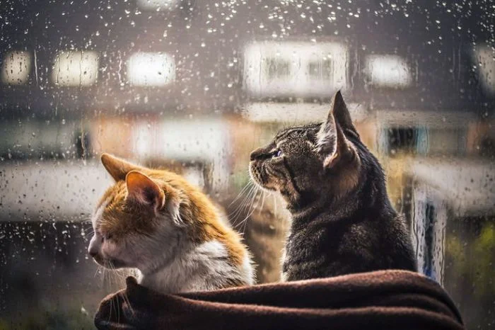 Но это не беда. Котики умеют превратить созерцание сезонного ненастья в искусство. А по их примеру и люди не мокнут под дождём, а заряжаются от него энергией осени.