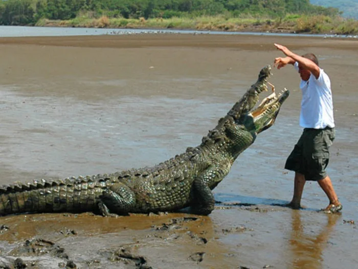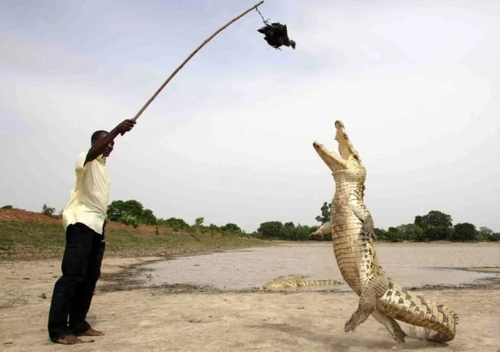 Уникальный кадр: крокодил и человек заключают договор о ненападении.