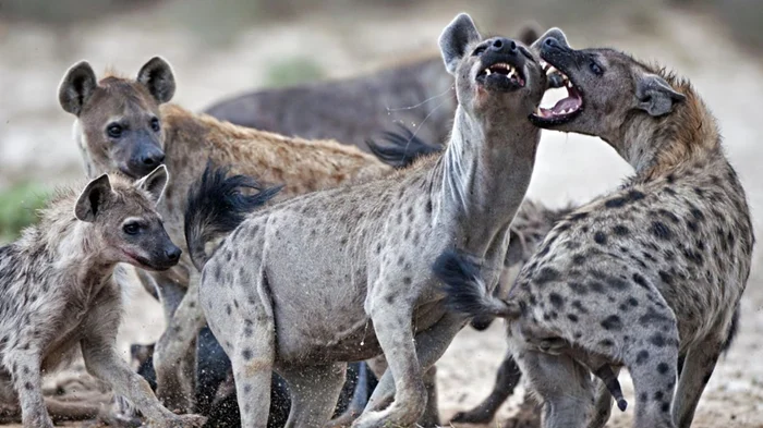 Из-за такой сплоченности стычки внутри стаи гиен происходят крайне редко. Проще уйти и основать свою стаю, чем пытаться выбить место под солнцем в родной.