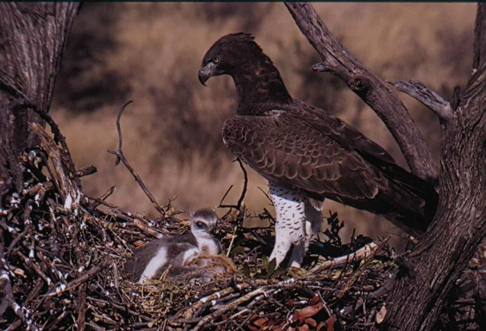 Боевые орлы — верные и моногамные партнеры. В своё потомство семейная чета вкладывается по максимуму. На строительство гнезда, высиживание кладки и выращивание малыша у птиц уходит больше года! Мало этого: так ещё и птенец будет всего один!