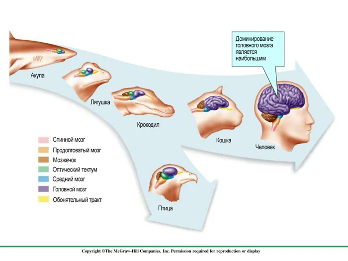 Даже отделы мозга у всех позвоночных примерно одинаковы. Разница лишь в их размере!