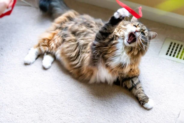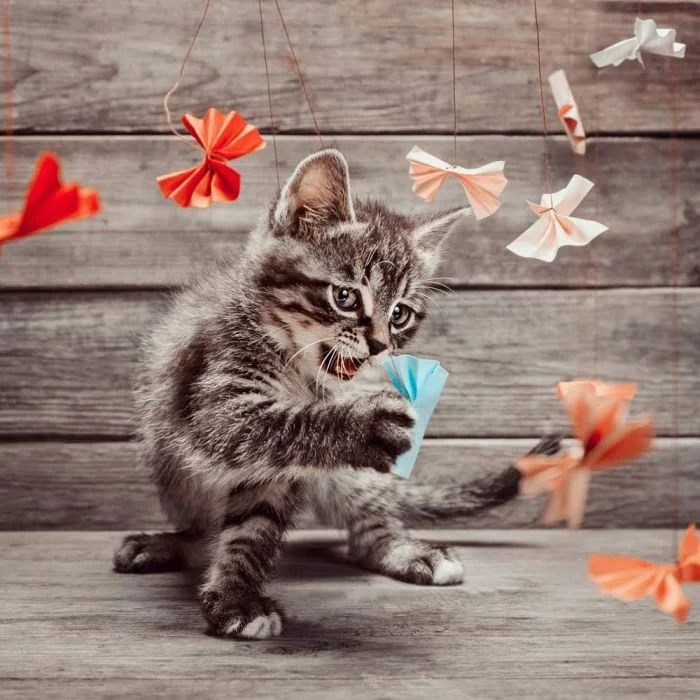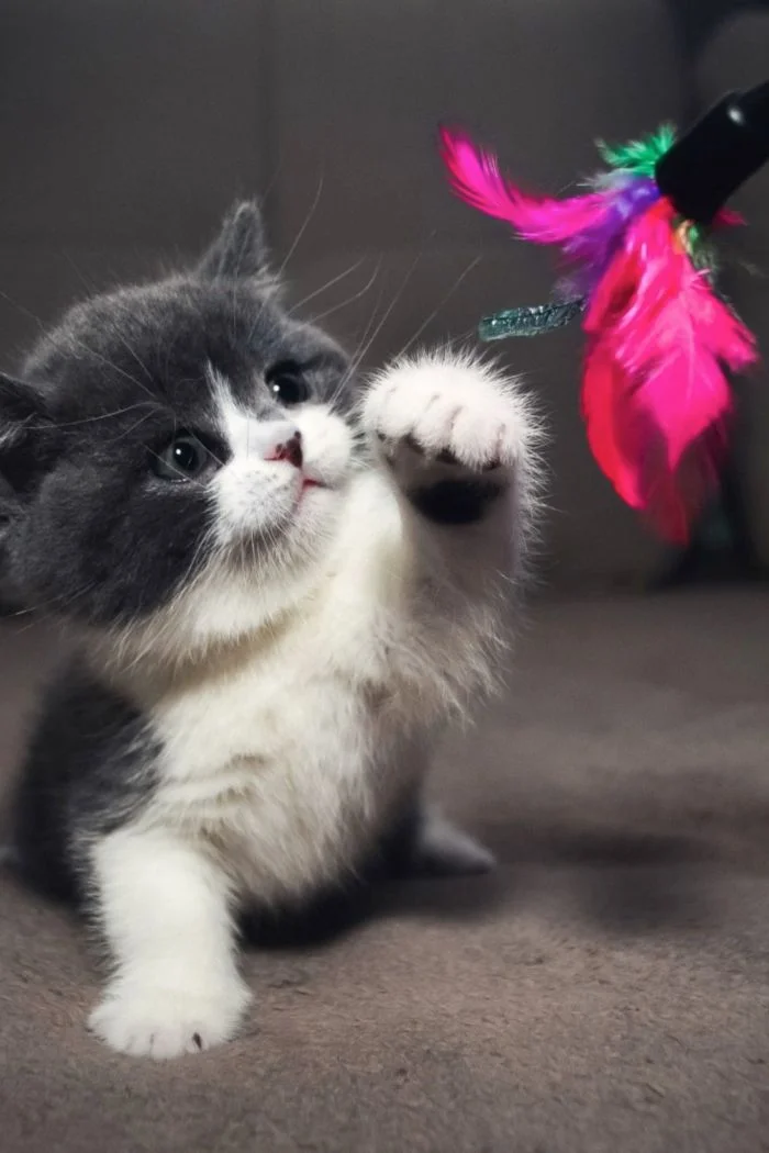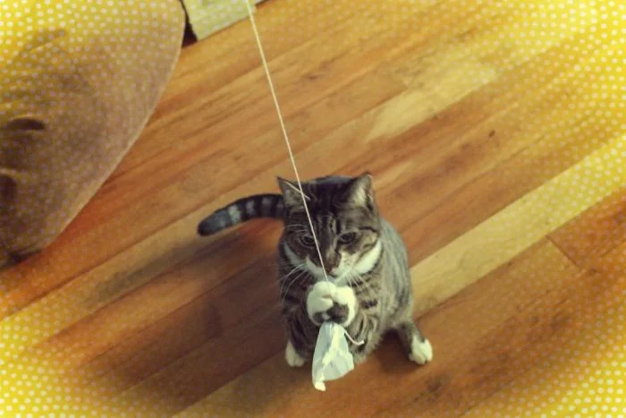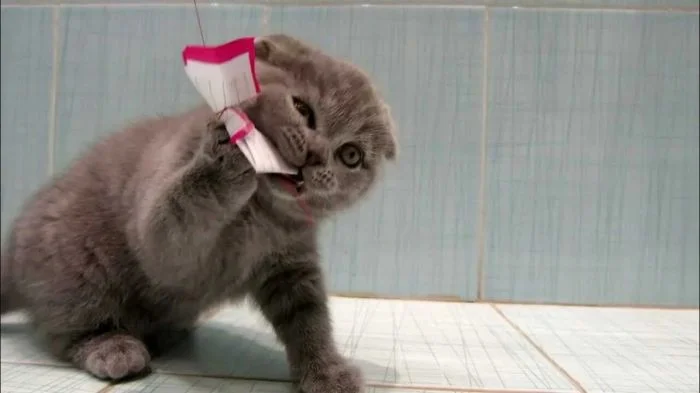 Считается, что так малыши развивают ловкость, координацию и познают мир. А потом они вырастают и становятся взрослыми и грациозными красавцами и красавицами. Но с детскими привычками не так легко расстаться. И игры с бантиком продолжаются на радость котикам и хозяевам.