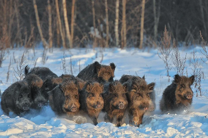Даже образ жизни зверей оказался полезен на севере. Кабаны — стадные животные. Их коллективный образ жизни позволяет эффективно добывать пищу в условиях бедного на калории Севера. Летом, когда еды в избытке, свинки разбредаются, кто куда. Но зимой они собираются в группу из 15-30 голов: к стадам из самок и детенышей присоединяются бывалые секачи. И плюсов от коллективной жизни на морозе масса!