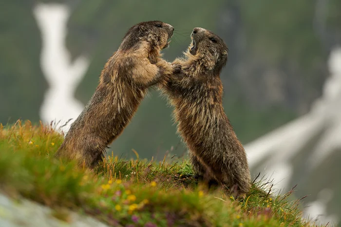 Альпийский сурок — самый тяжелый представитель семейства беличьих. В нём может быть до 9 килограмм мяса, костей и жира. Преимущественно жира. Потому что всё прохладное горное лето грызуны обжираются семенами и свежей зеленью альпийских лугов. По крайней мере, пока погода позволяет.