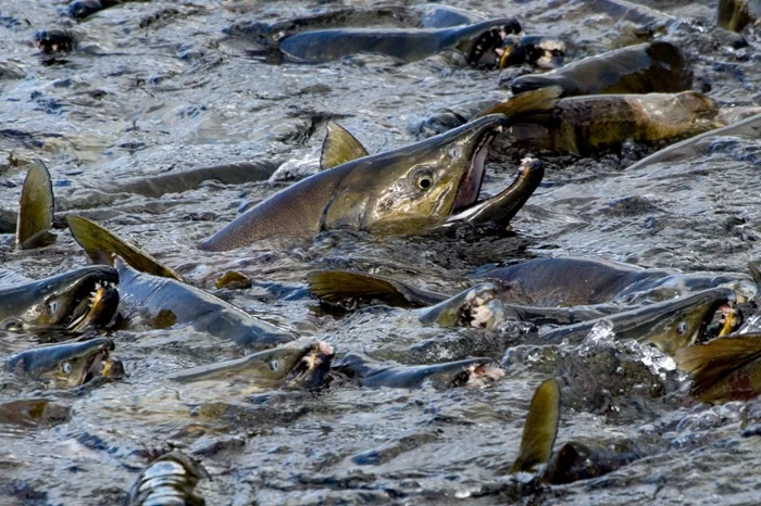 А вот дальше всё становится хуже. У кеты начинается нерест. Мощные гормональные сдвиги меняют её тело, после чего рыба отправляется в ту реку, где родилась несколько лет назад. Кета плывет вверх против течения. Всё это время она не ест, не спит. Лишь борется с водными потоками, преодолевая до 700 км! Мало того, что безумное путешествия кеты долгое и трудное, по его окончании самкам нужно выметать несколько кило икры!