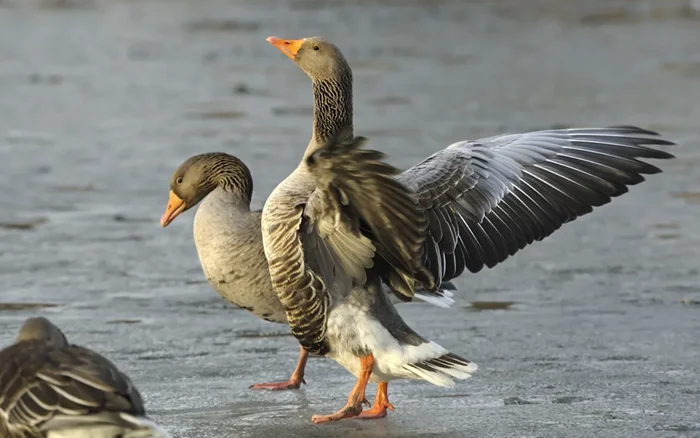 Серые дикие гуси большую часть года путешествуют в больших стаях. Лишь в сезон размножения птицы разбиваются на пары.