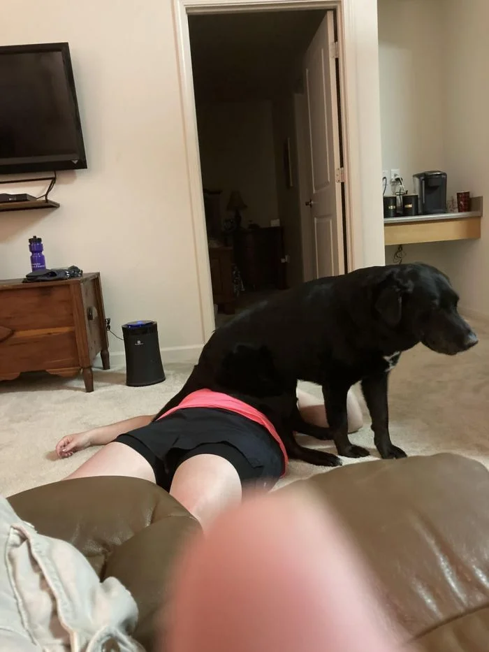11. Моему псу не нравится, когда я занимаюсь спортом