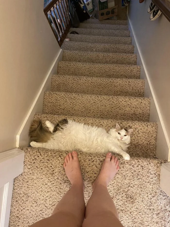 12. Мой кот всегда лежит на лестнице, и нужно быть очень внимательным, чтобы не упасть