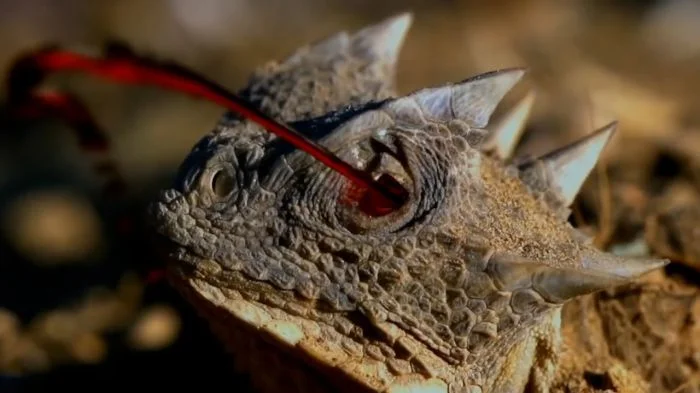 Жабовидная или рогатая ящерица (Phrynosoma) брызжет кровью из глаз в хищника, когда все прочие способы обороны оказываются неэффективными.