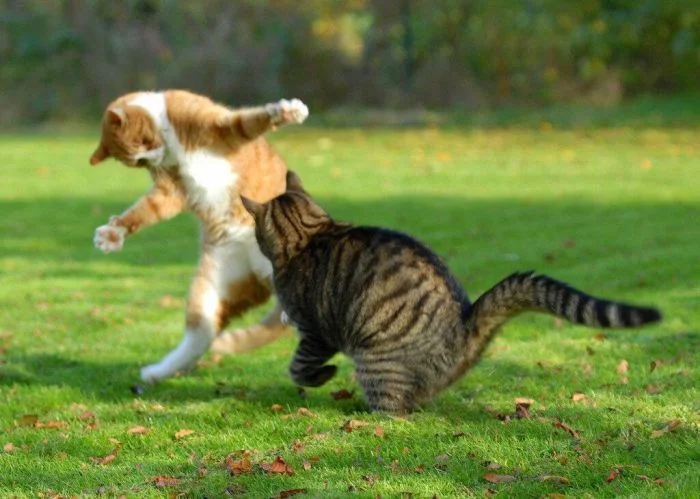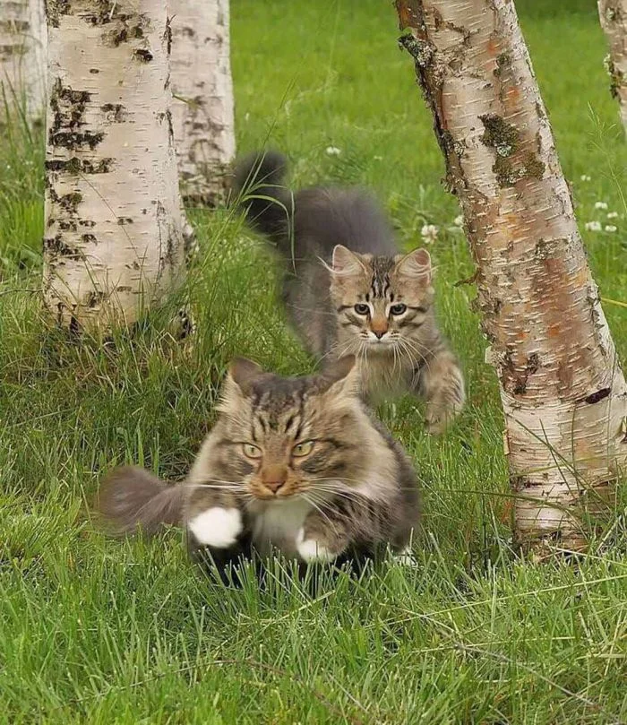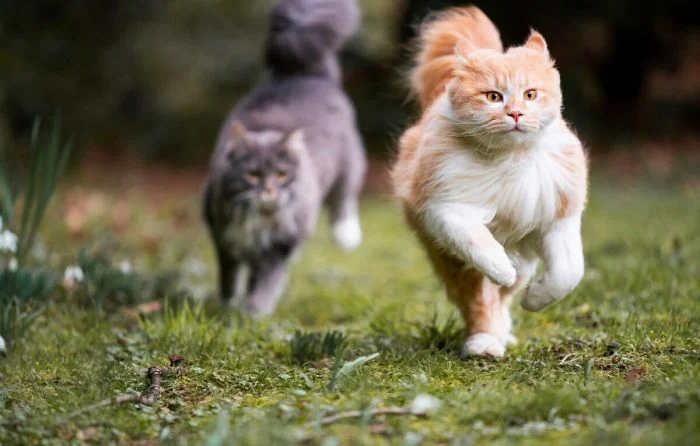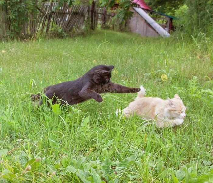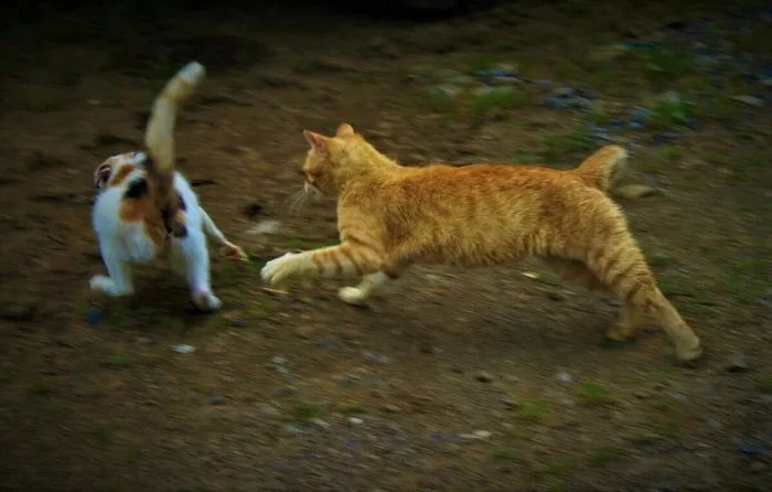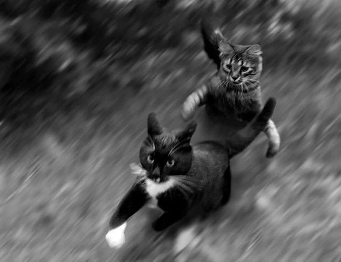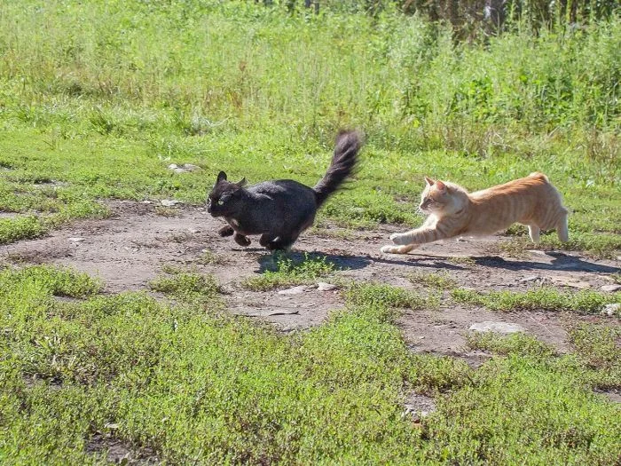 Но активность котейки тоже иногда проявляют. Да ещё какую: если уж пушистые спринтеры взялись поиграть друг с другом или погонять собак, то закончить игру им ничто и никто не помешает. Целеустремлённость – это про котиков.