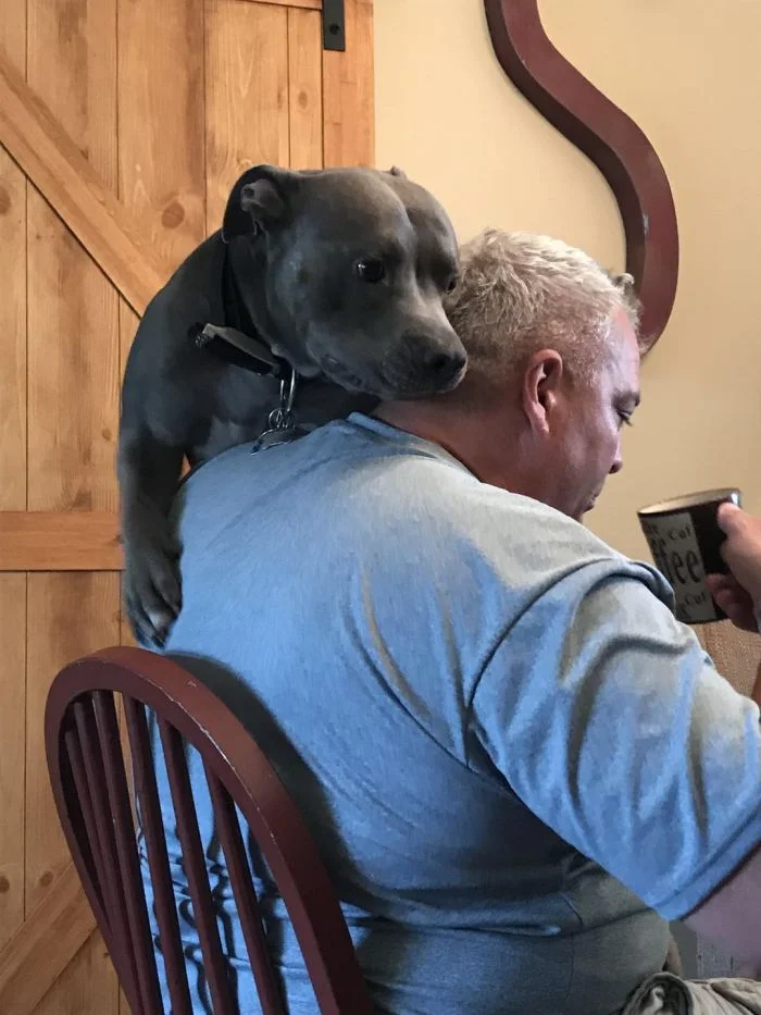 10. Копирует кота, и забирается папе на плечо