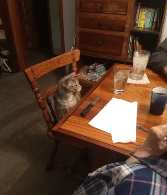 Бабушка с дедушкой прошли путь от «никакого кота в доме» до «не занимайте его место за столом».