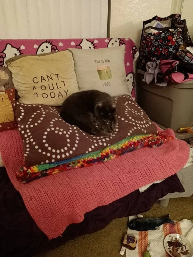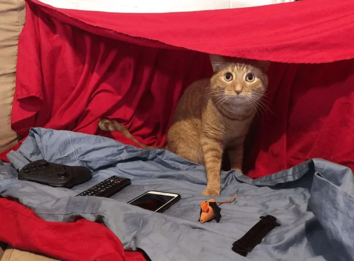 Наш пушистик обожает домики из одеял, поэтому мы построили ему вот такое убежище.