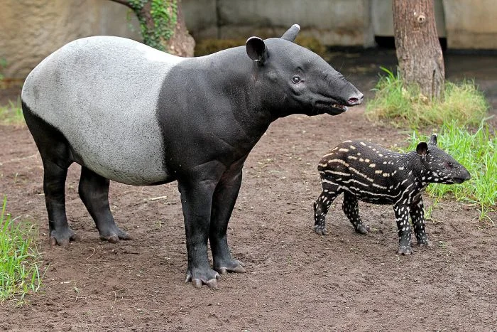 Малайских тапиров легко узнать по отчётливой светло-окрашенной полосе, которая распространяется от плеч до конца спины. Этот рисунок используется для маскировки, поскольку пигментация нарушает контур, что делает его более сложным для обнаружения.