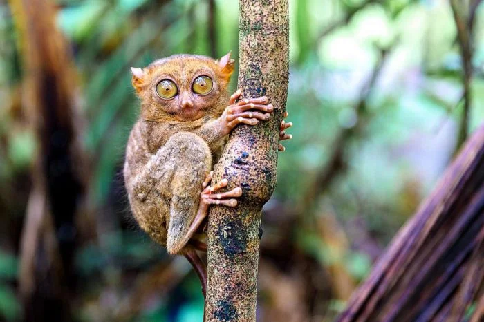 Как и у медленного лори, у тарсиеров огромные глаза. В некоторых случаях их глазные яблоки больше, чем весь мозг.