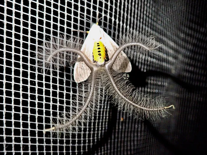 Заметить такую «красоту» невозможно только при условии, что ты слепой: размах крыльев ужасной австралийской моли — до 4 сантиметров. Для сравнения: габариты привычной серой моли в 3-4 раза меньше. Но ведь мы здесь собрались не крылышки обсуждать, верно? Щупальца! Они растут на брюшке. Странные волосатые и очень длинные отростки размером порой больше самого насекомого.