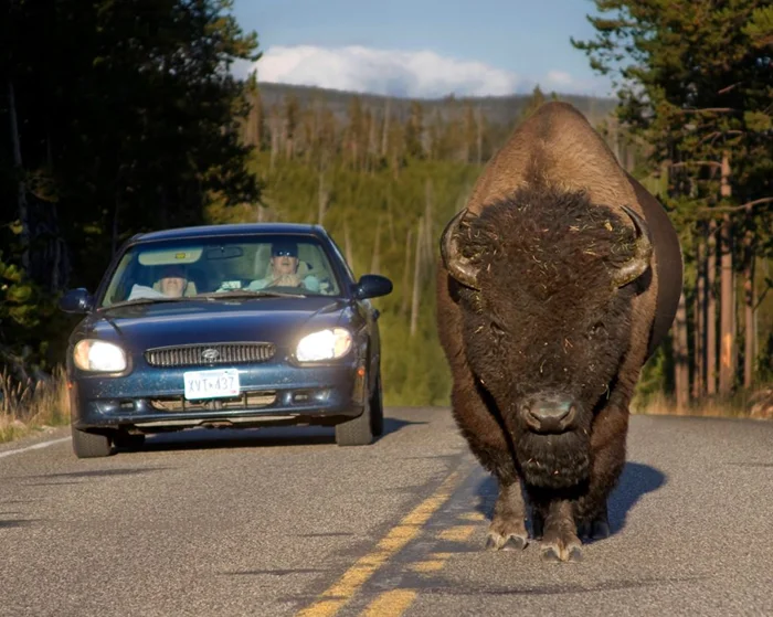 Это крупнейшее животное континента. Американская легенда с печально известной историей. В 19 веке гигантские стада бизонов сократились в миллион (!) раз, и в дикой природе осталось около 500 голов.