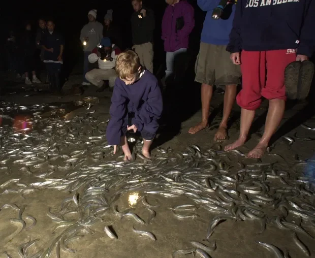 Итак, знакомьтесь, калифорнийский грунион. Небольшая серебристая рыбка с перламутровой чешуей. Встретить её можно исключительно у западных берегов Северной Америки: от американского штата Калифорния до мексиканского Южная Калифорния. В их распоряжении целый Тихий океан! Плыви куда хочешь, мигрируй, развивайся! Но рыбёхи упорно держатся за клочок земли, на котором обитают. Ведь размножаются грунионы не в воде, как все нормальные рыбы, а на суше.