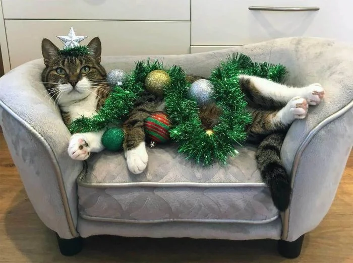 Украшения для Нового года славятся своим сиянием, блеском и атмосферой настоящего чуда. В таком окружении даже наши пушистые друзья выглядят как герои волшебных историй или мультфильмов.