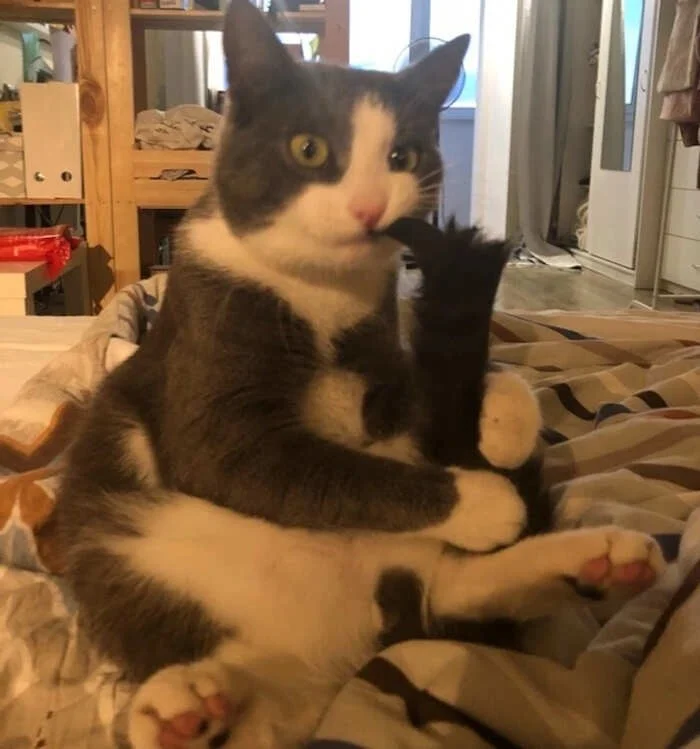 9. Наша кошка спит очень забавно