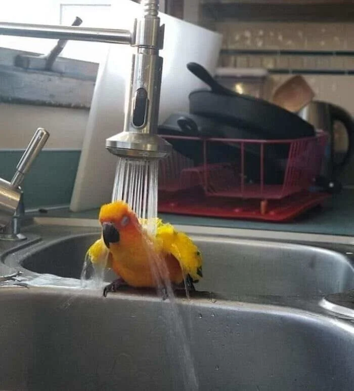 12. Наш попугай обожает душ