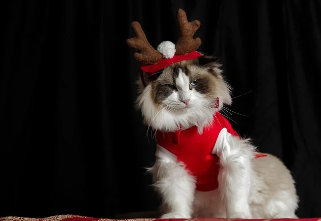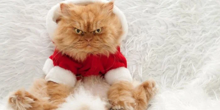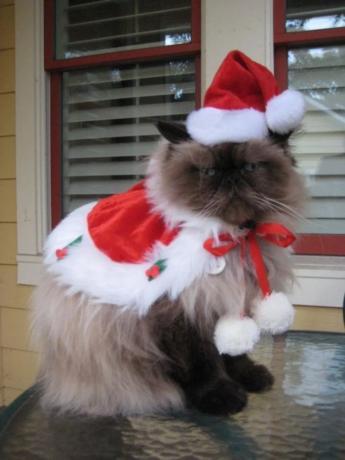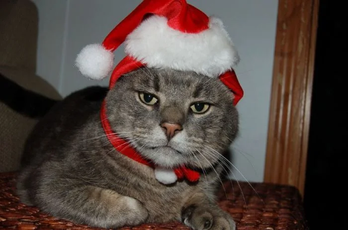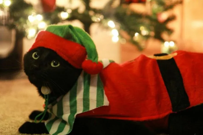 Считается, что мода зародилась ещё в Древнем Египте, где кошек почитали как богов и украшали драгоценными бласлетами и кольцами. При дворах европейских монархов кисы тоже фигурировали в шляпках и платьях. Тенденция сохранилась и в современных реалиях. И теперь котикам особенно достаётся на зимние праздники. Их наряжают в колпачки, цепляют рожки, придают образы зимних сказочных персонажей. Вот только многие котейки этому не особенно рады, что читается по их возмущённым или равнодушным мордашкам. Но они стоически терпят новогодние закидоны своих хозяев, потому что искренне любят их.