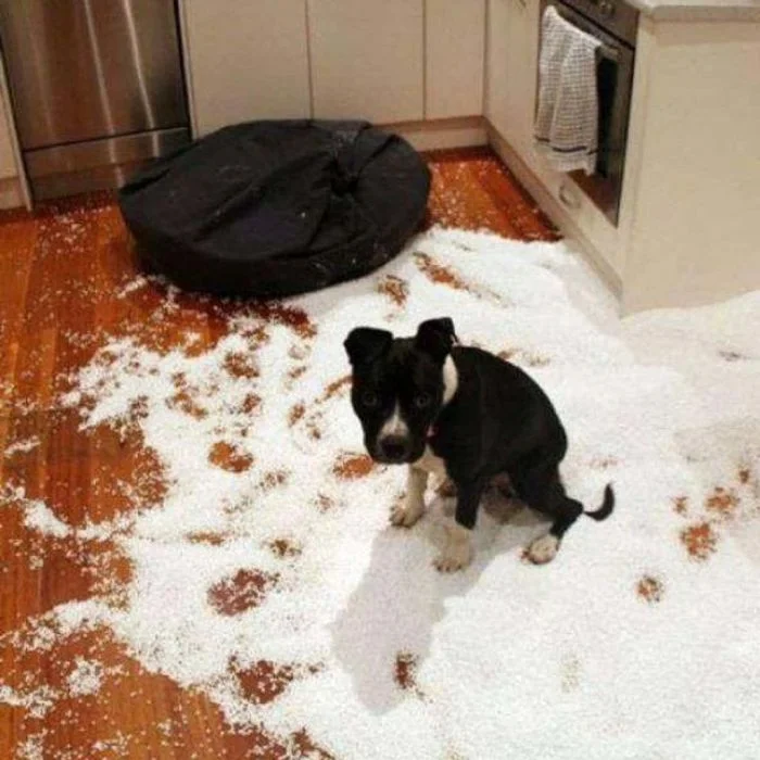 1. Пёсик абсолютно точно не рылся в мусорном ведре в поисках ценных вещей
