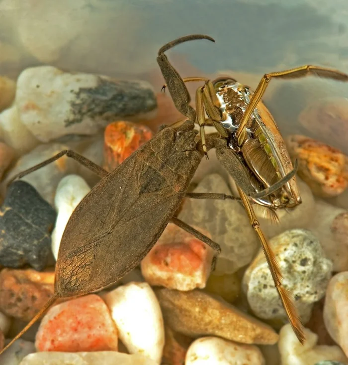 Водяных скорпионов можно встретить и вне воды. Обычно, когда они отдыхают после полёта.