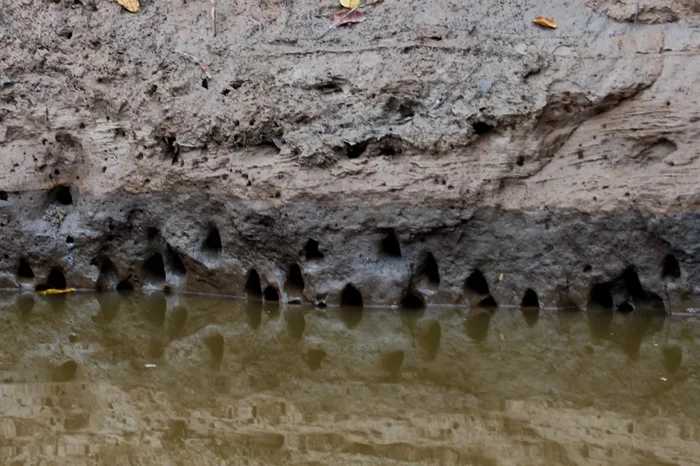 Норы кольчужных сомиков в сезон засухи.