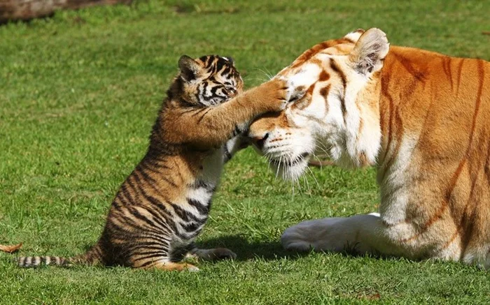 Ну а, как известно, ребёнку всегда позволено больше, чем взрослому. Подравшийся на уроке пятиклассник получает в наказание серьёзный разговор и, в худшем случае, шлепок по попе от родителей. Напавший на старшего малыш шимпанзе в ответ получает лишь несильный толчок и грозный окрик. Тигрята нападают на свою маму, без боязни получить страшный удар, от которого они погибнут на месте.