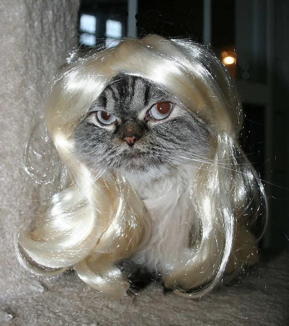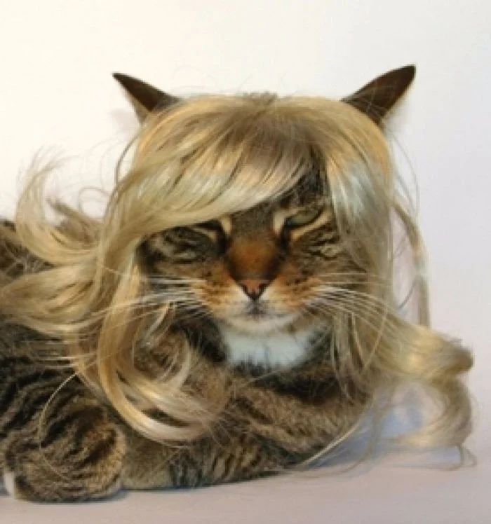 А ещё сделать их образ ещё более прекрасным, чтобы превзойти саму природу. Конечно, всякие попонки, ботинки и комбинезоны используют далеко не все владельцы домашнх животных. Или делают это только по необходимости. А вот парики – другое дело. Для смешной фотки можно и поступиться принципами, ведь образы действительно получаются шедевральными.