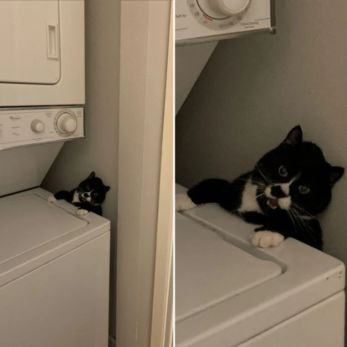 1. Друг нашёл кота в ванной, в не очень удобном положении