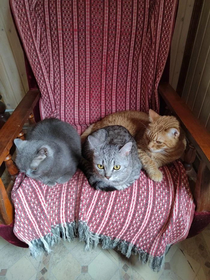 АКСИНЬЯ: У меня уже были кот и кошка, но я зимой спасла из подвала маленького котёнка, вылечили его и у меня теперь дружная троица.
