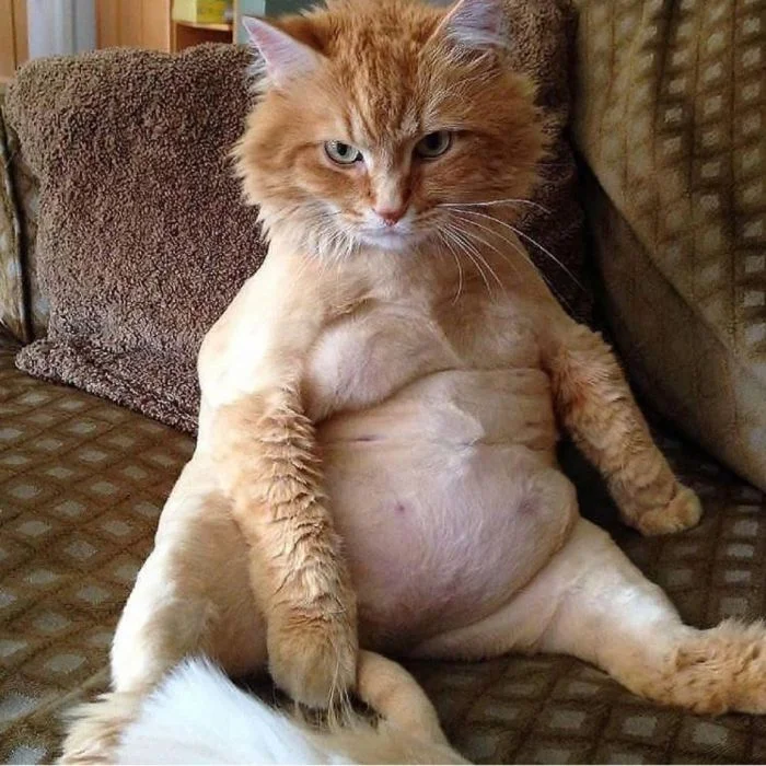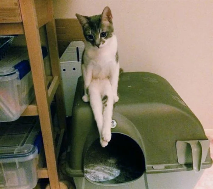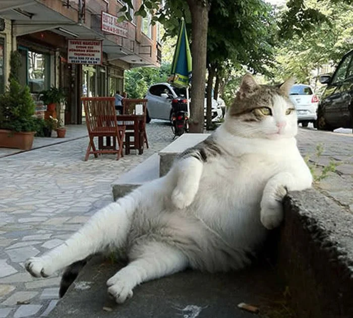 Но котейки умеют не только лежать, но и сидеть. Сидячая поза у них выходит весьма забавно и вызывает смех, поскольку так пушистики иногда очень уже похожи на людей, но с поправкой на особенности котикового строения.