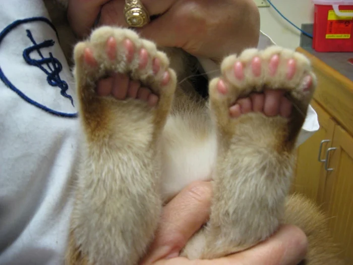 А вот это уже совсем не норма. Полидактилия — это генетическая мутация или порок развития на ранних стадиях развития плода. В большинстве случаев дополнительный пальчик представляет собой плохо сформированный комочек из кожи, костей и мышц. Очень редко он является полностью функциональным. Обычно животины с полидактилией проигрывают своим пальценормальным родственникам. Но вот у кошек и собак полидактилия — относительно частое явление. Всё благодаря вмешательству человека, не дающего эволюции удалять многопальцевых через естественный отбор.