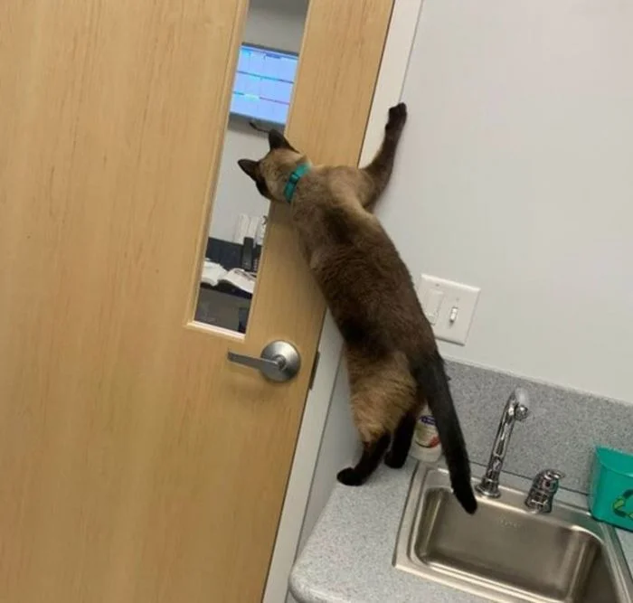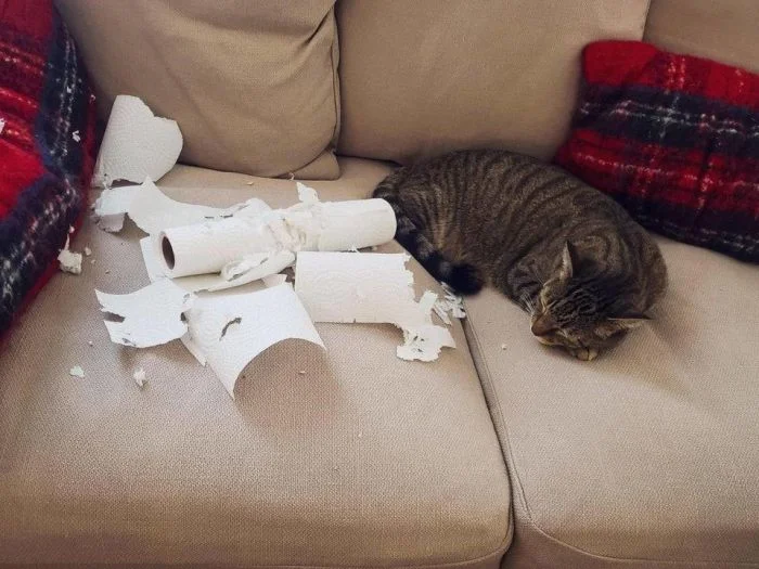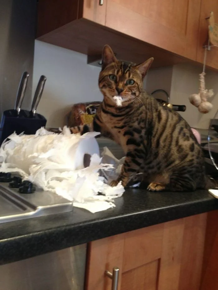 Но постоянно сидеть взаперти надоедает. И не только людям. Нашим питомцам тоже бывает скучно сидеть 24 часа в доме и видеть одну и ту же обстановку. Поэтому логично и ожидаемо, что они самую малость сходят с ума и начинают чудить. Потом, конечно, всё возвращается на круги своя, но на память остаются такие шедевральные кадры.
