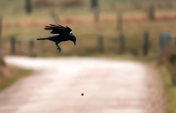 Вообще, бросать что-либо с неба у птиц в порядке вещей. Если вы жили в сельской местности на юге, то знаете, о чём идёт речь. Осенью, когда созревают грецкие орехи, вороны дежурят у деревьев и наперебой собирают орехи. Вскрыть твердую скорлупу самостоятельно получается не всегда. Поэтому птички взлетают повыше и швыряют орех вниз. Доступное питательное лакомство готово! В городах с орехами проблемы, так что с развлечениями для ворон — тоже, и вот они и придумали себе новую забаву.