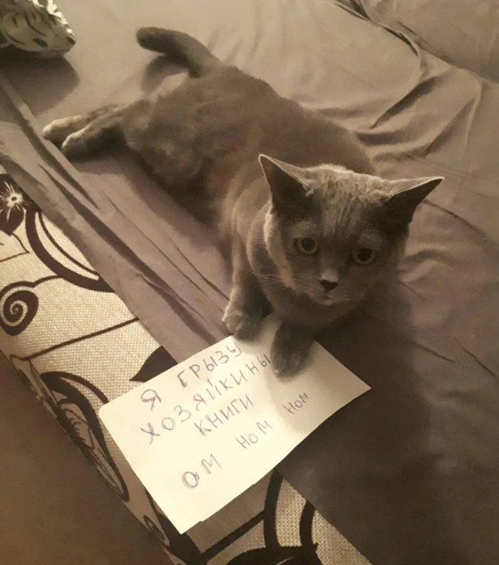 2. «Особо опасный хулиган, нельзя оставлять книгу на диване, моментально обгрызёт корешок или углы»