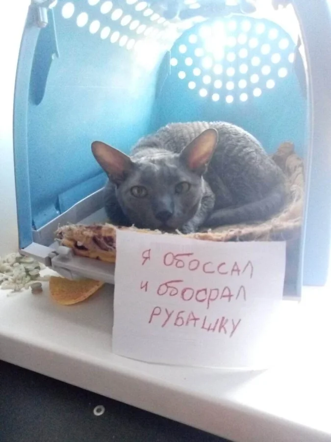 Некоторые нарушители закона попадаются с поличным, имея свежие улики прямо у себя под лапами — и в таких ситуациях владельцы могут решить пристыдить своего пушистого друга.