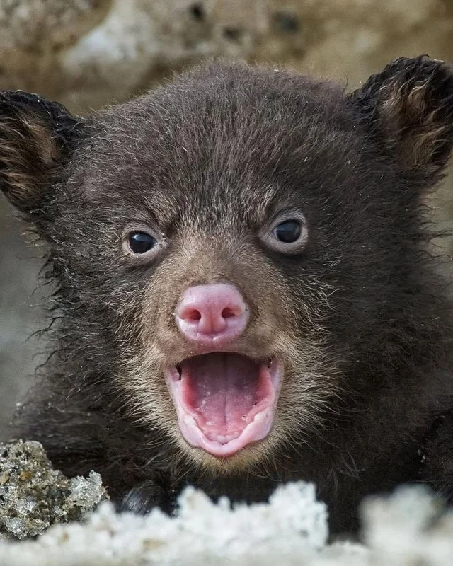 Обратите внимание, медвежонок впервые покинул свою берлогу! Посмотрите, как с любопытством он изучает новый для себя мир. Наверное, многие из нас по утрам выглядят не иначе как он.