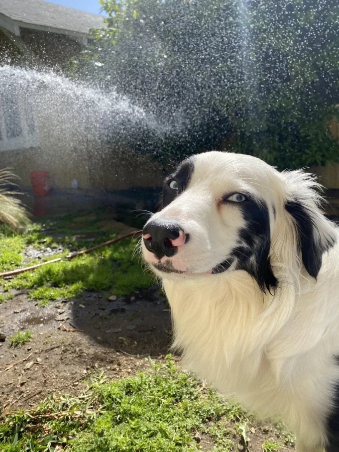 Бенджи после того, как попил свежей воды из шланга