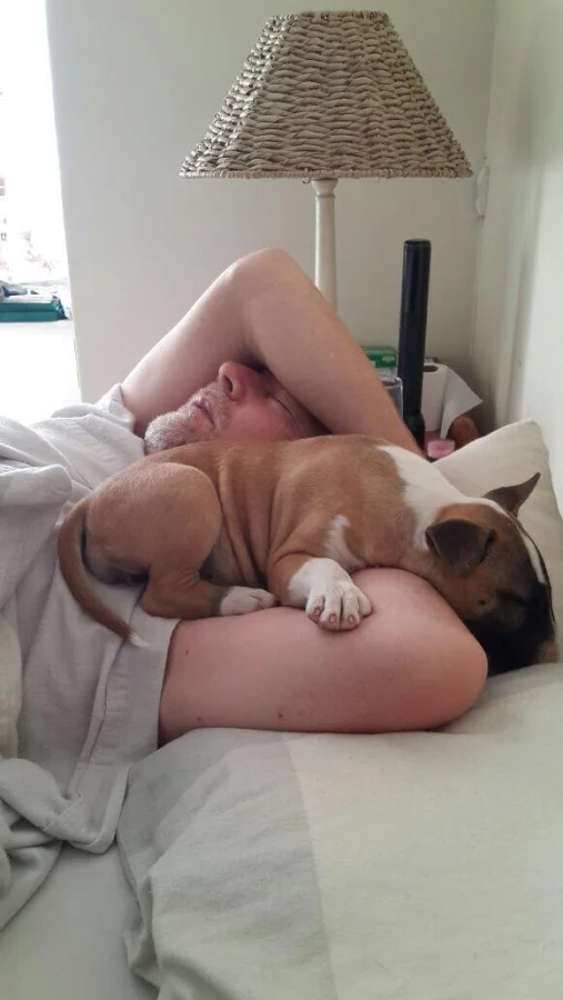 7. Муж встал с кровати всего на полминуты, а щенок уже храпит на его месте
