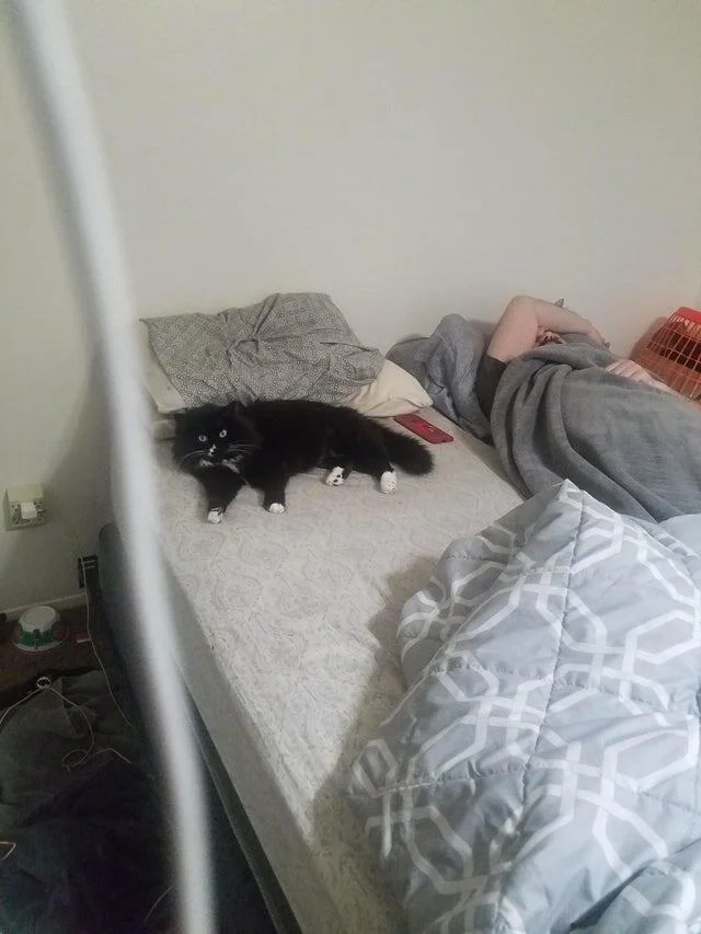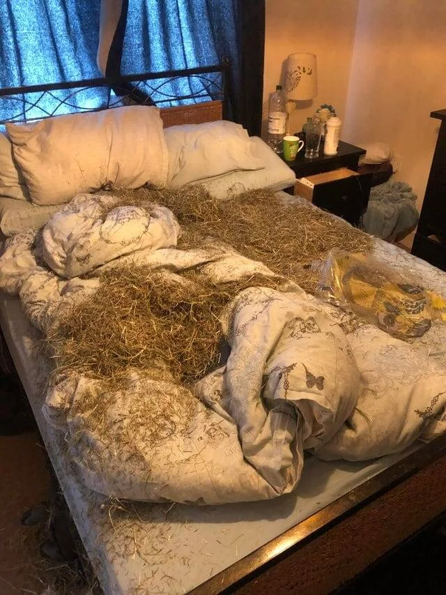 А когда подняли её одеяло, оказалось, что она теперь не единственная хозяйка постели, у неё там есть нелегальные жильцы.