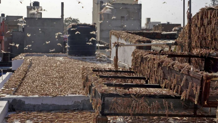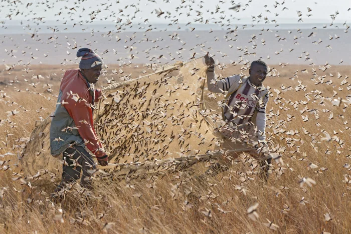 Стадная форма саранчи активно синтезирует 4-винилазинол. Это феромон, который работает как громкоговоритель «все сюда!». Из-за этого особи со всей округи собираются в огромную стаю и начинается настоящий армагеддон. Каждая особь — это 2 грамма голода. Именно столько она должна съедать ежедневно. Представляете, сколько может съесть рой из миллиарда насекомых?