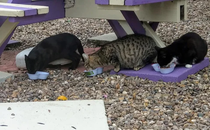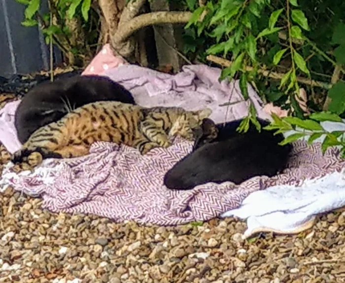 9. «Не мои коты. Сделала им постель, было жалко, что лежат на камнях»