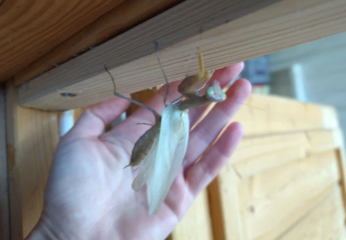 Вскоре наша подопечная найдёт самца, чтобы продолжить род (известно, что после спаривания самка часто поедает партнёра). Это вторая важная причина создать богомолу условия для безопасной линьки – таким образом вы помогаете сохранить популяцию этих полезных хищников. В природе во время смены экзоскелета они совершенно беззащитны перед другими хищниками, а в домашних условиях шансы успешно перелинять значительно выше.