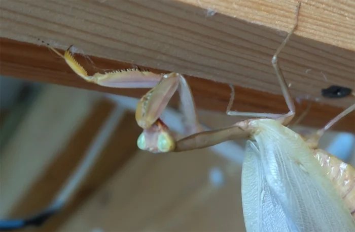 Ну, для начала, это просто прекрасно. Все остальное, безусловно, имеет значение, и об этом стоит поговорить. Вот, к примеру, богомол по имени Капитолина, который поселился в моем загородном доме около двух недель назад, сегодня сбросил свое старое, уже ставшее ему тесным, одеяние.